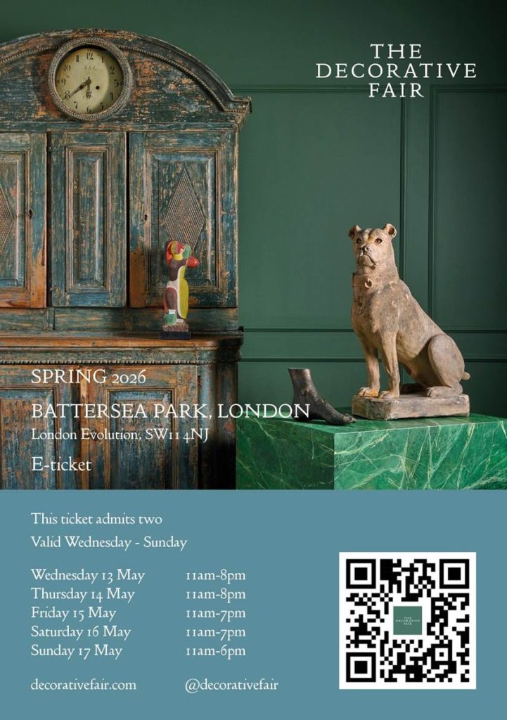 I’m delighted to be exhibiting at the Spring Decorative Fair, one of London’s most respected destinations for antiques, interiors, and design. Celebrated for more than 35 years, the Fair brings together around 130 specialist dealers, each known for their eye for originality and craftsmanship. It’s a trusted source for interior designers, collectors, and private buyers seeking pieces that bring character and history to a space.