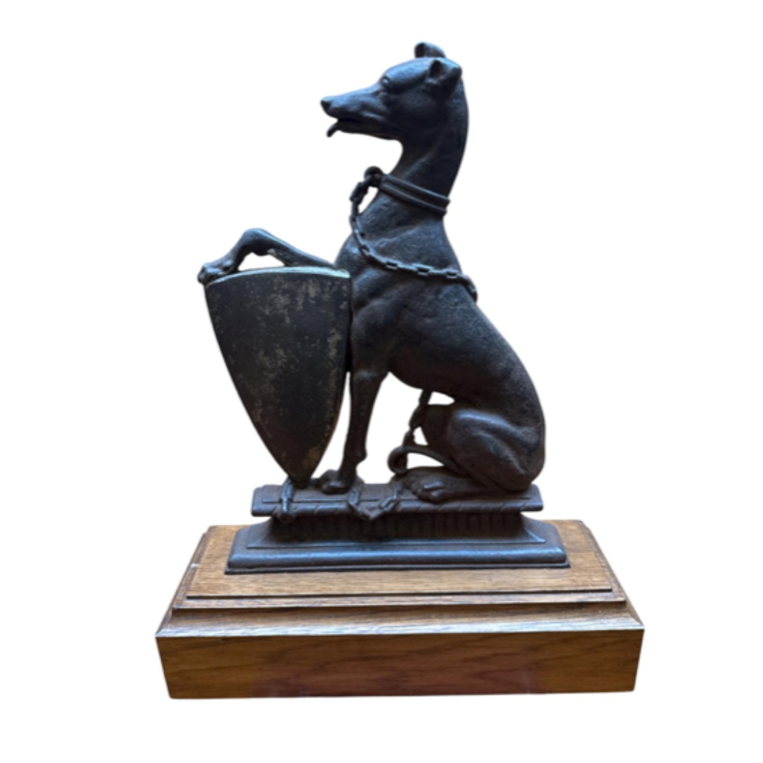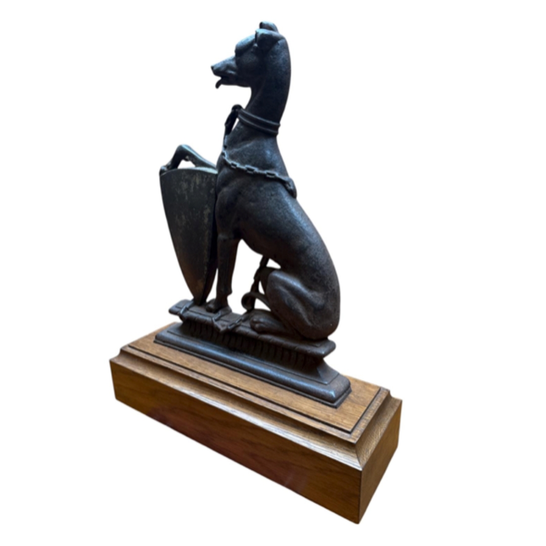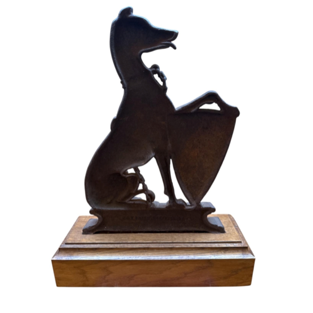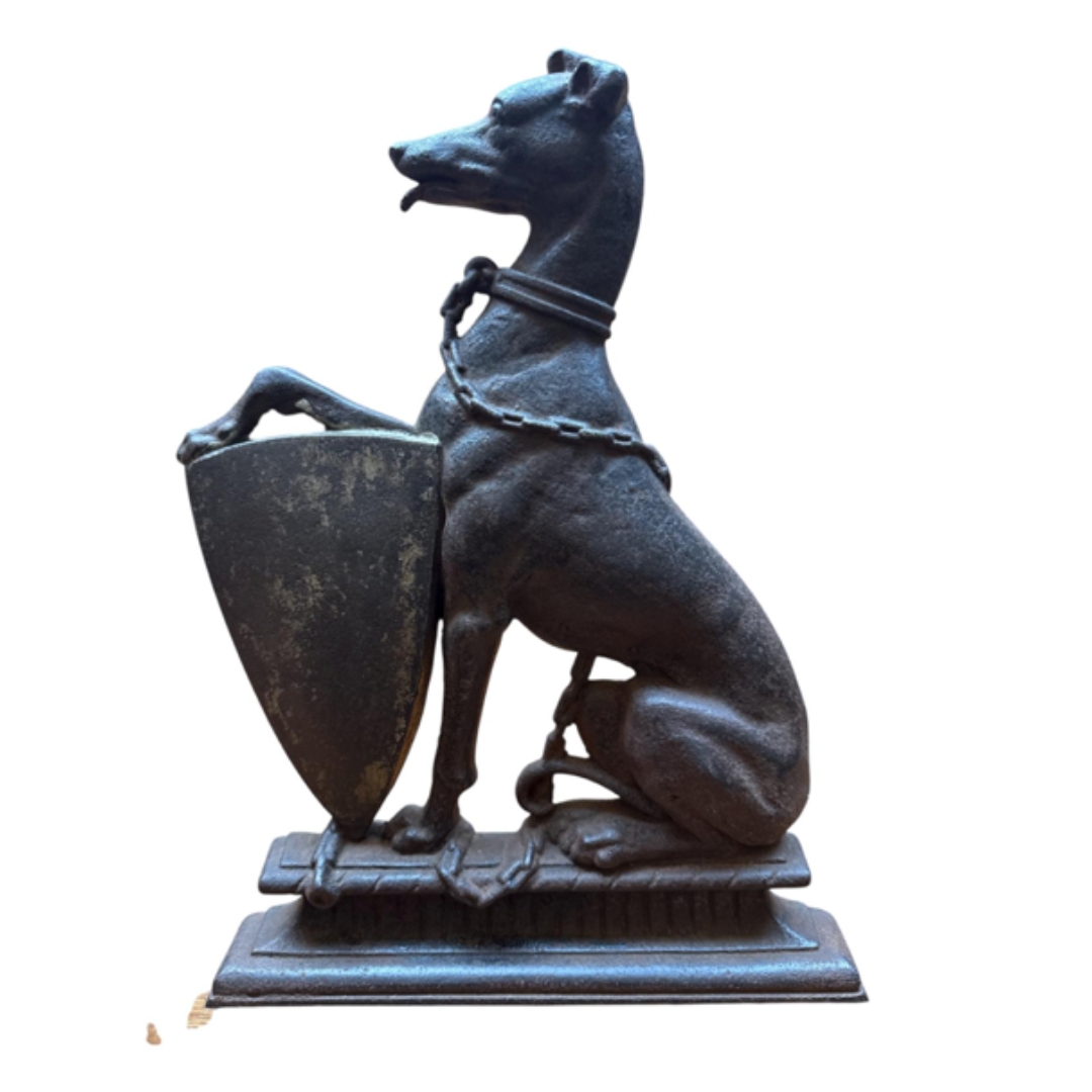 A Victorian cast iron door step modelled as a greyhound. 41cm tall