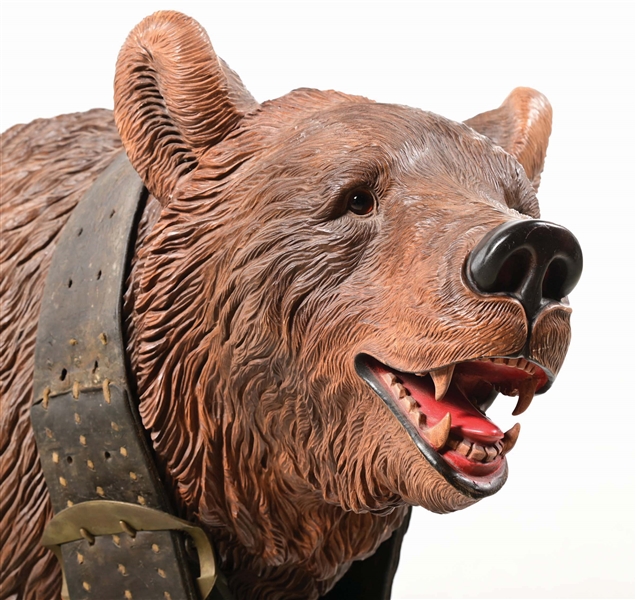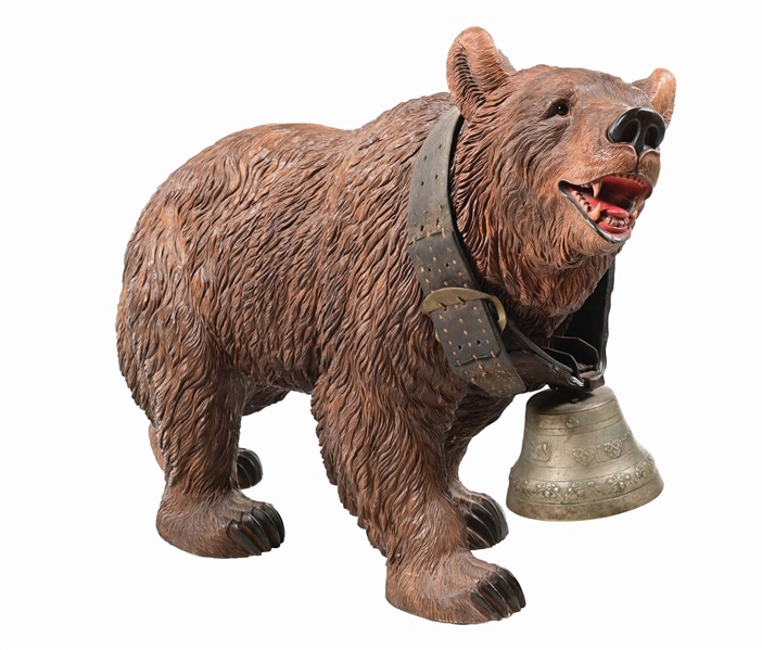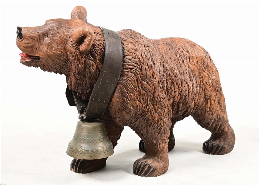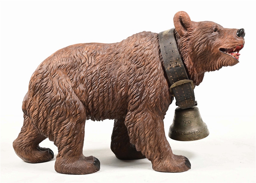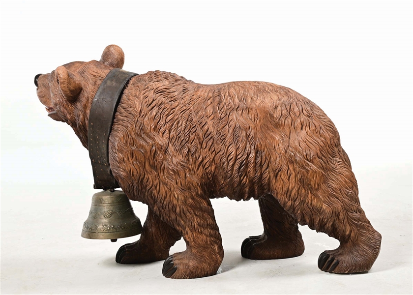 An Unusual Swiss Carved Black Forest Near Life-Size Figure of a Strolling Bear