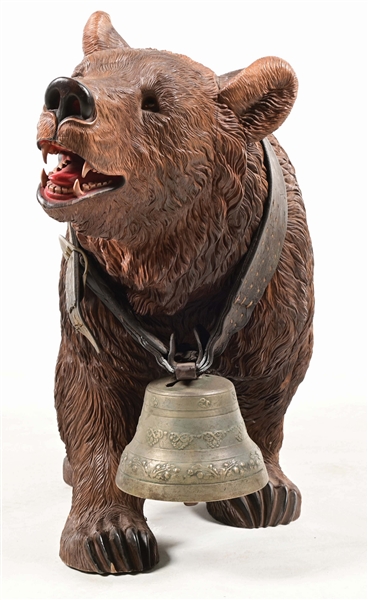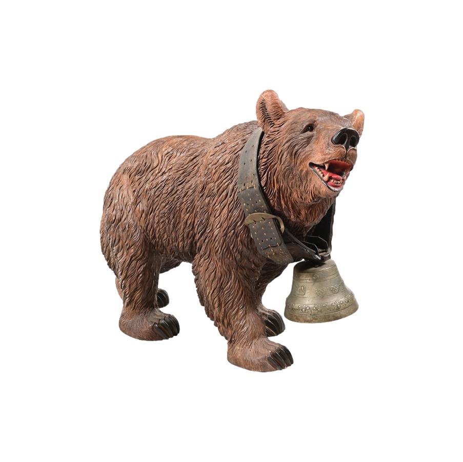 An Unusual Swiss Carved Black Forest Near Life-Size Figure of a Strolling Bear,