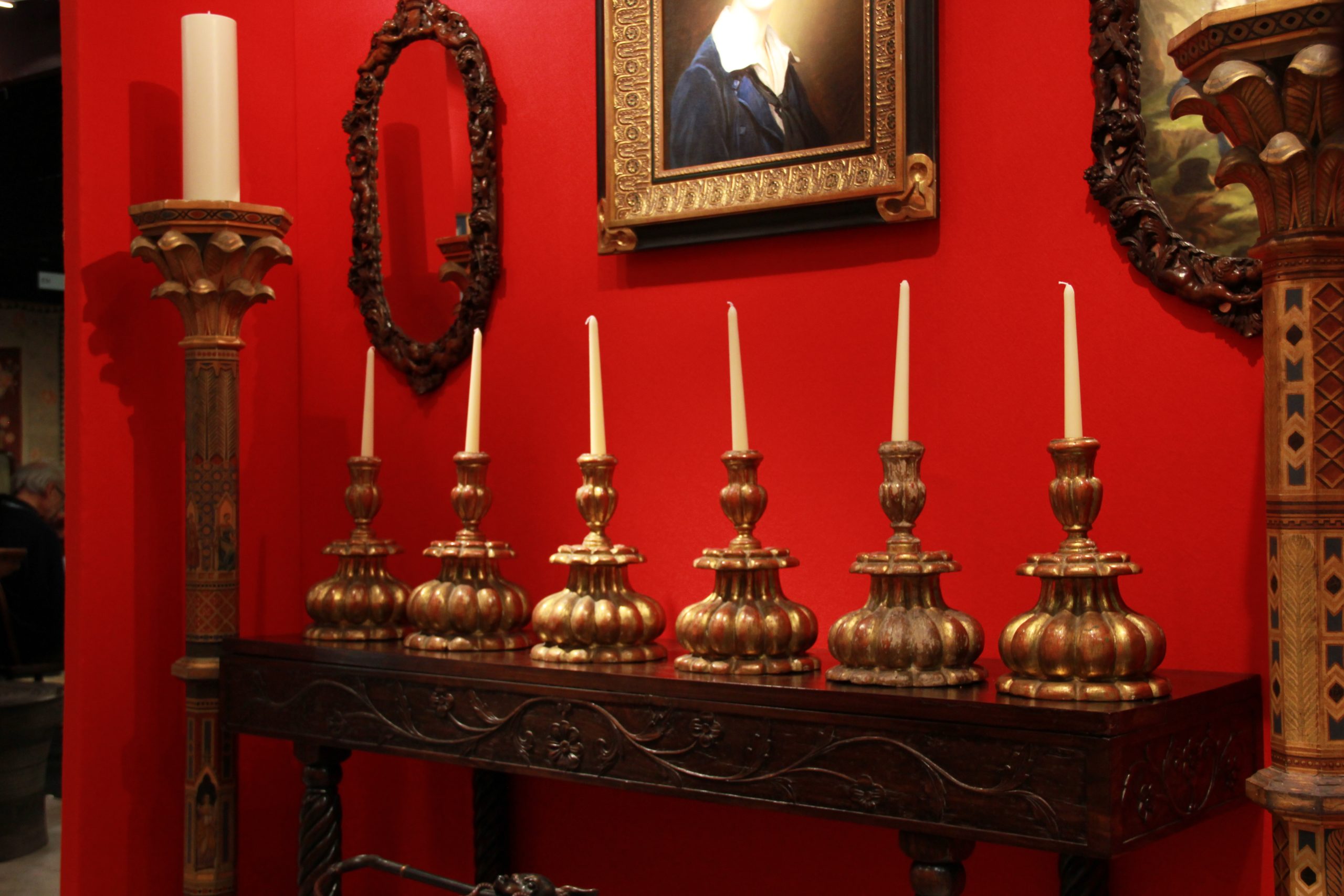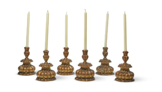 Exquisite Set of Six Giltwood Candlesticks