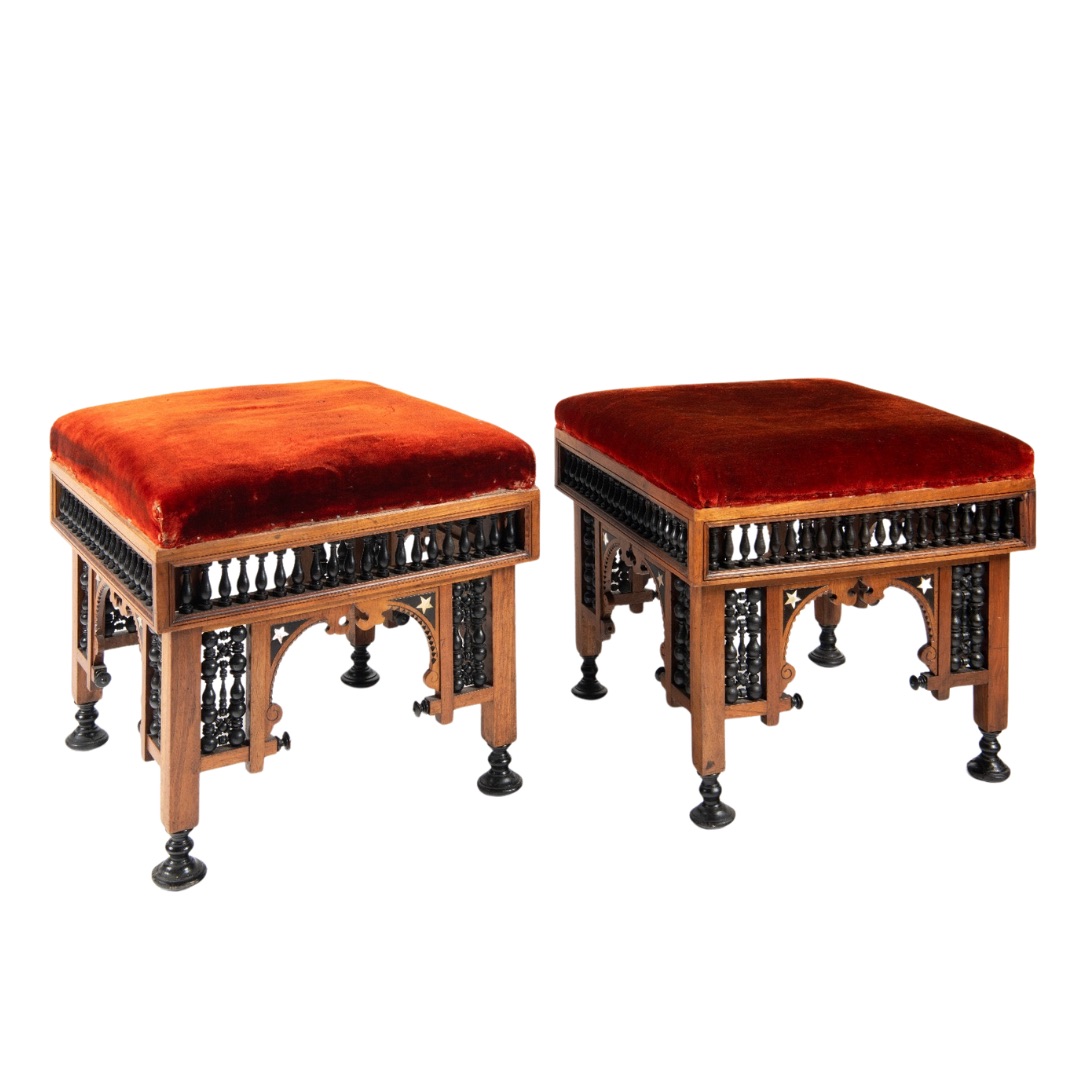 Pair of stools by Giuseppe Parvis (1831-1909),H 46 cm , 50 x 50 cm